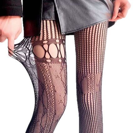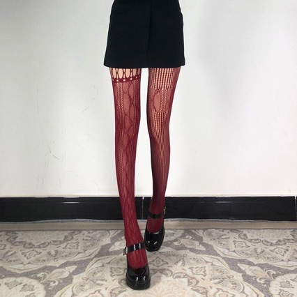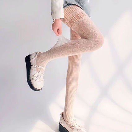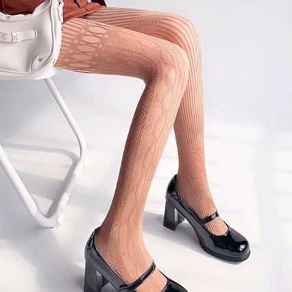 縦に走る繊細な網目が美しい、脚のラインを際立たせるタイツです。