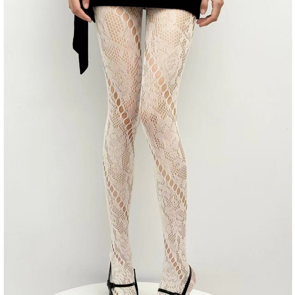 複雑な幾何学模様が脚全体を美しく彩る網タイプのタイツです。